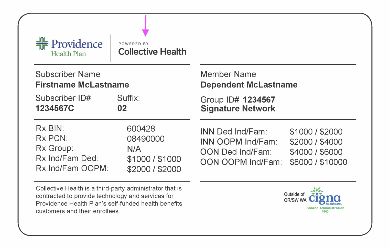 This change is continuing to roll out by employer group, so it is essential to check the member’s most current ID card to verify their plan and see if the “Providence Health Plan Powered by Collective Health” logo is there.